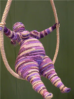 All of these words I would apply to the work of Yulia Ustinova, a Russian fibre artist living in Moscow, creator of a wonderful body of work that she calls Fat and Not Afraid. I love these sculptures, curvaceous women which she crochets in the act of, well, being real women. They dance, they sunbathe, they do acrobatics, they read the Sunday papers. Okay, so some of their occupations are not so everyday, but what the heck, why not? They are a joyous celebration of the female form as it really exists for at least half of the women in the world, which is part of what makes me love them so much. Here are some of her pieces and you can see more by clicking here. I hope you enjoy them as much as I do.
